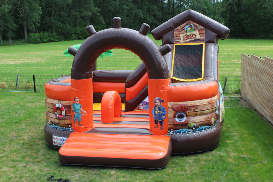 Onze nieuwste aanwinst is een springkasteel met hoge glijbaan en veel springvlak. Ideaal voor een piratenfeestje met veel kindjes.